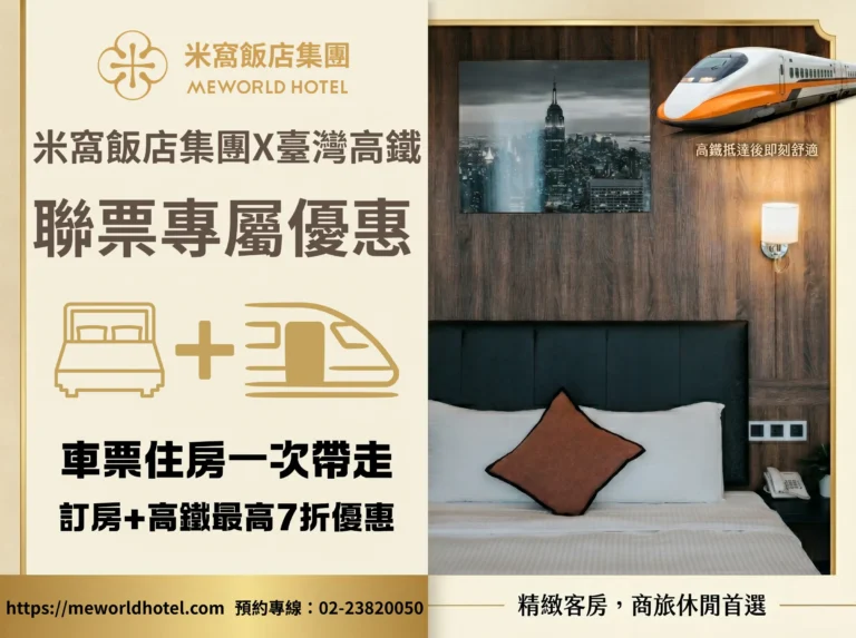 米窩飯店X臺灣高鐵 聯票優惠(限時10%會員點數加碼)